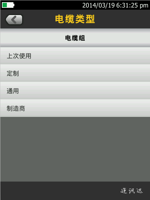 4、點擊電纜類型出現上次使用的電纜類型,如果沒有自己想要測試的電纜類型,可以選擇更多,出現電纜組,一般情況下選擇通用,然后選擇對于的線纜類型。