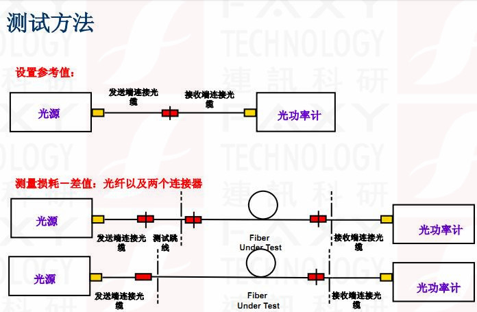測試方法是指所含端點連接數(連接器數)。方法A:損耗結果包含光纖和一端的連接器。方法B:損耗結果包含光纖和兩端的連接器。方法C:損耗結果不包含鏈路兩端的連接器,僅測量光纖損耗。