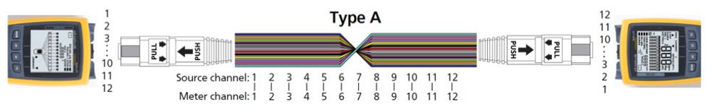 方法A使用A型直通MPO中繼光纜,光纜一端的采用Key-Up連接器,另一端采用Key-Down連接器。