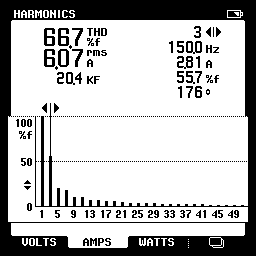 從以下參數(shù)組中選擇一個或兩個參數(shù): 電壓/安培/赫茲 瓦特、伏安(VA)、乏(VAR)、功率因數(shù)(PF)、位移功率因數(shù)(DPF)、頻率 諧波、總諧波失真(THD)、電壓(基波和諧波)、安培(基波和諧波)、瓦特(基波和諧波) 頻率(諧波)、%(諧波)、相位(諧波)、K因數(shù) 溫度 電阻、二極管、通斷、電容 示波:直流電壓、直流電流、交流電壓、交流電流、頻率 正或負向脈寬、相位、正向或負向占空比、最大峰值、最小峰值、(最小-最大)峰值、波峰因數(shù) |