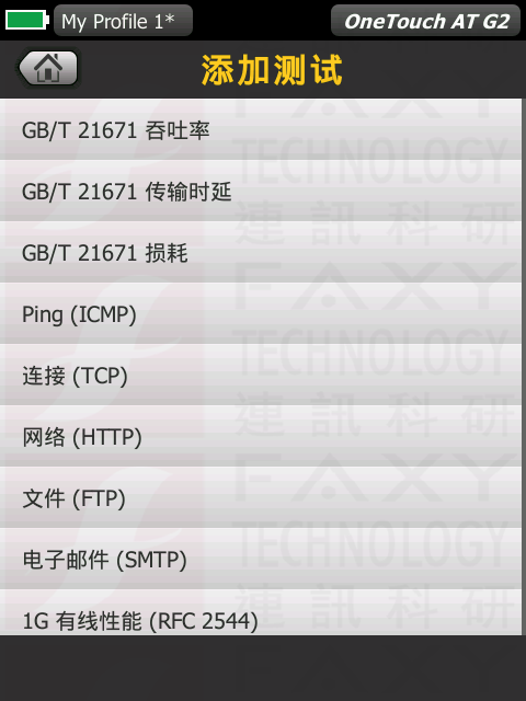 可以根據GB/T 21671 測試標準分項選擇需要測試的選項,根據標準測試GB/T 21671 吞吐量、GB/T 21671 傳輸時延、GB/T 21671 損耗(損耗即為丟包率),這樣可以根據用戶不同的需求進行相對應的網絡測速,簡單明了的界面使得用戶操作更加方便,更加熟悉測試流程以及測試標準。特別提出高級測試是屬于1TG2-1500的功能, WIFI是屬于1TG2-3000的功能。