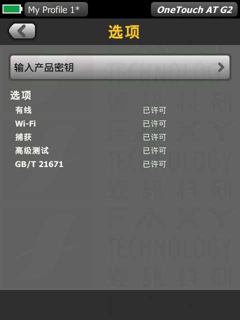 內置標準為 GB/T 21671 測試標準以及RFC 2544 測試標準。如圖為測試儀已經許可的儀器測試選項,如果GB/T 21671 已經許可,那么就可以按照國家的標準進行相對應的網絡測試,并且能夠出具帶有標準的報告文件。