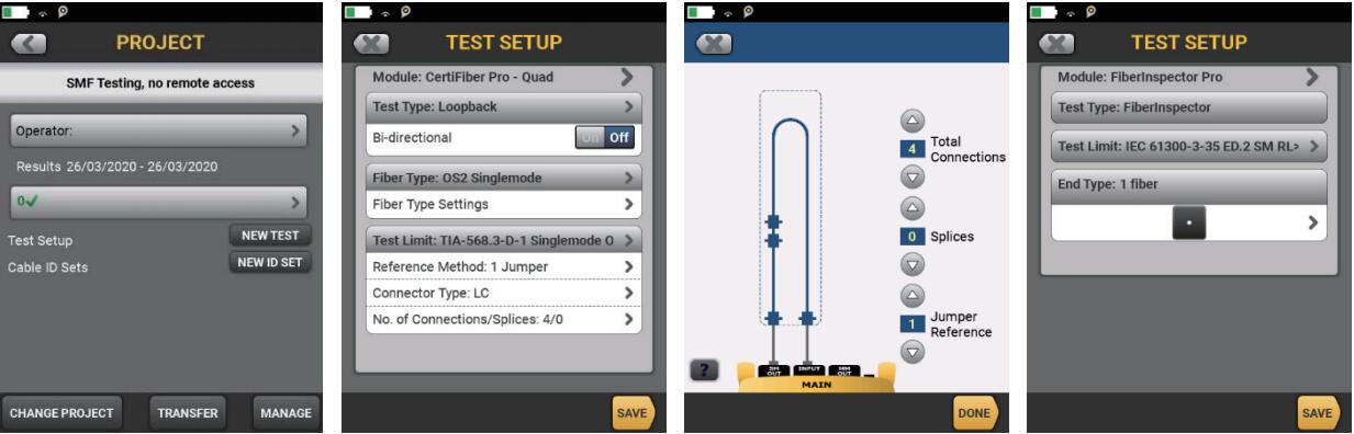 新建一個項目;創建初始OLTS測試,配置連接點和熔接點數量,增加端面檢查測試。