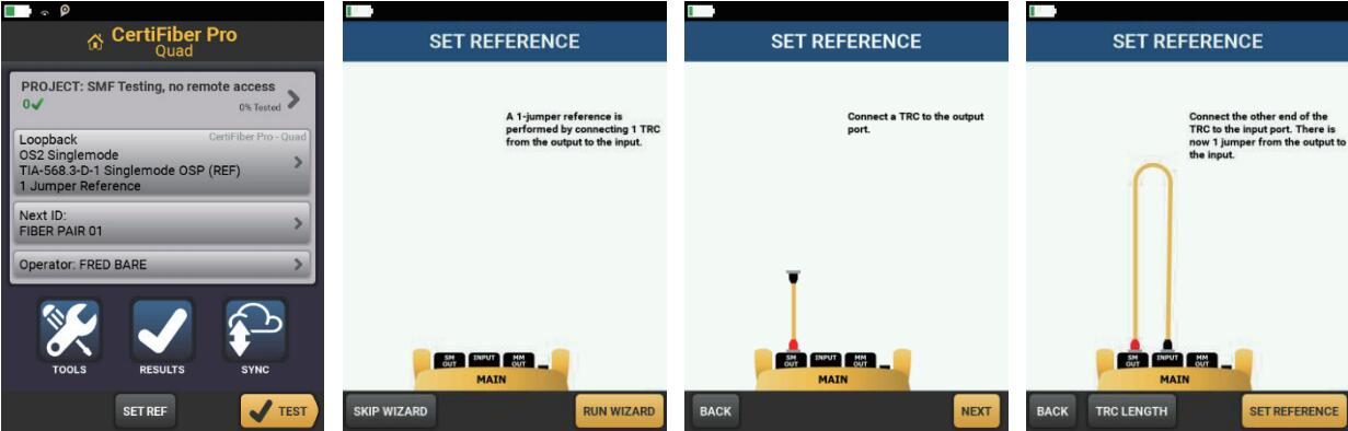環回連接到被測鏈路。在嘗試測試之前,您必須將清潔的TRC測試參考跳線、SmartLoop智能環回跳線和相應的QuickClean一鍵式清潔筆送到遠端位置。圖5.執行參考過程和TRC(測試參考跳線)檢驗過程。這將能夠保證良好的測量結果。對于單模TRC,損耗應小于0.25dB。