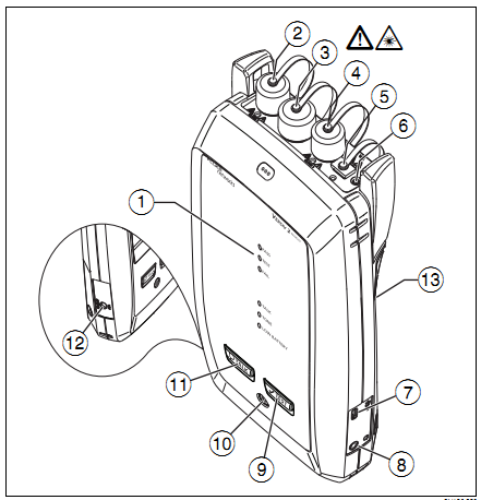6、按鈕,用于手動控制輸出端口(2和 4)和可視化故障定位儀?(5)。